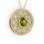 Peridot ve pembe kuvars 8 ayar altın kolye (40 cm altın rolo zincir)