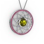 Peridot ve rodolit garnet 14 ayar beyaz altın kolye (40 cm gümüş rolo zincir)