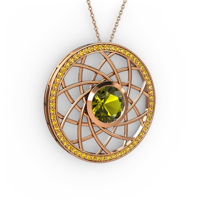 Peridot ve sitrin 925 ayar rose altın kaplama gümüş kolye (40 cm rose altın rolo zincir)
