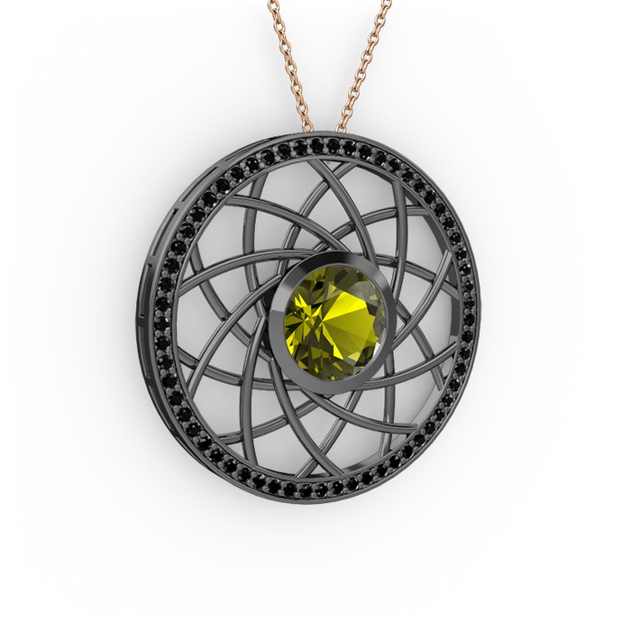 Peridot ve siyah zirkon 925 ayar siyah rodyum kaplama gümüş kolye (40 cm rose altın rolo zincir)