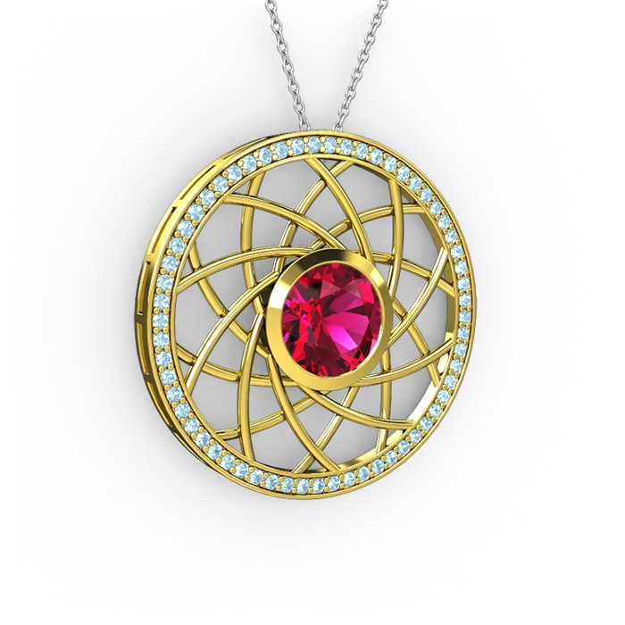 Rodolit garnet ve akuamarin 18 ayar altın kolye (40 cm beyaz altın rolo zincir)