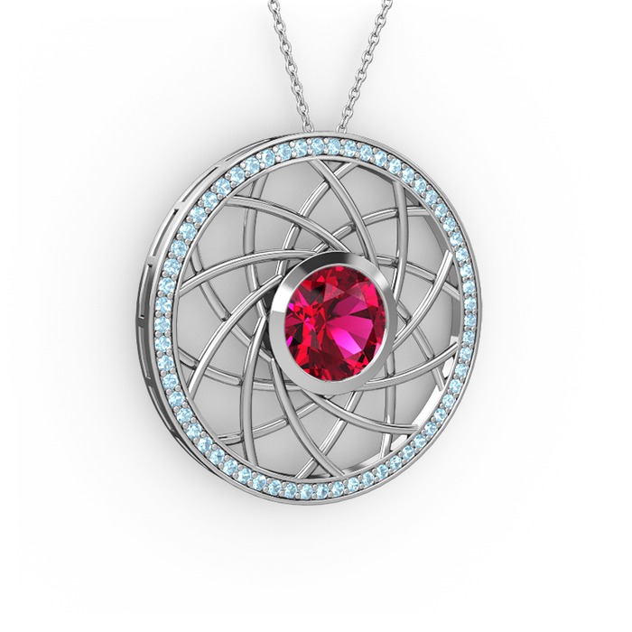 Rodolit garnet ve akuamarin 18 ayar beyaz altın kolye (40 cm beyaz altın rolo zincir)