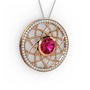 Rodolit garnet ve akuamarin 925 ayar rose altın kaplama gümüş kolye (40 cm beyaz altın rolo zincir)