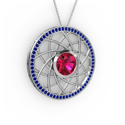 Rodolit garnet ve lab safir 14 ayar beyaz altın kolye (40 cm beyaz altın rolo zincir)