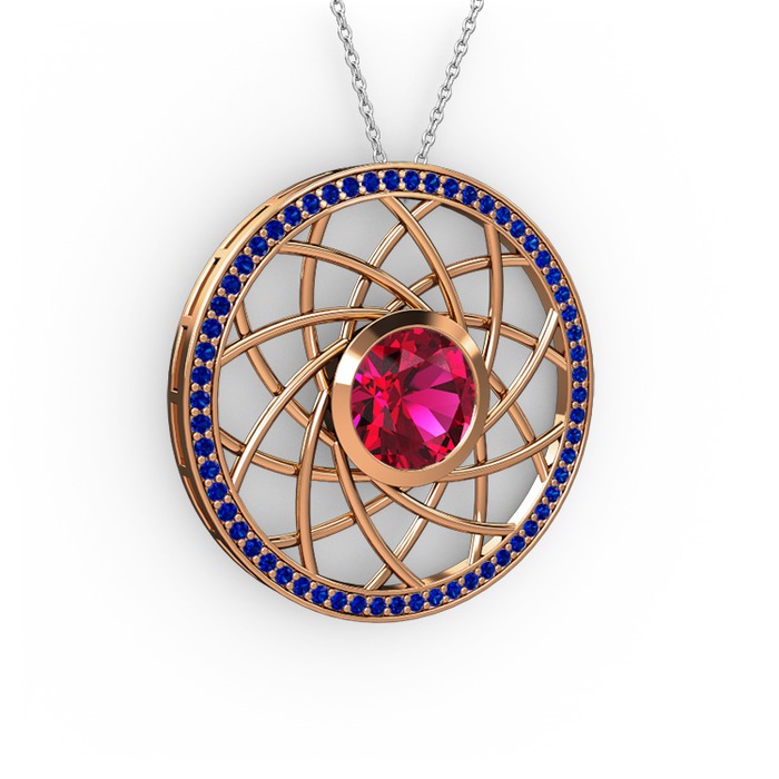 Rodolit garnet ve lab safir 18 ayar rose altın kolye (40 cm beyaz altın rolo zincir)
