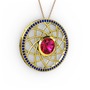 Rodolit garnet ve lab safir 8 ayar altın kolye (40 cm rose altın rolo zincir)