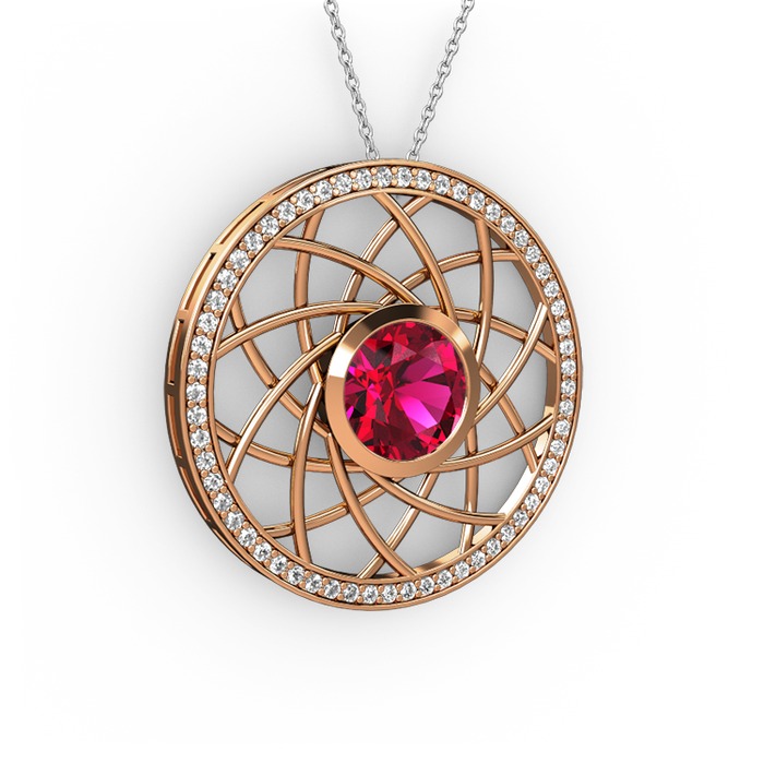 Rodolit garnet ve pırlanta 18 ayar rose altın kolye (0.66 karat, 40 cm beyaz altın rolo zincir)