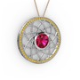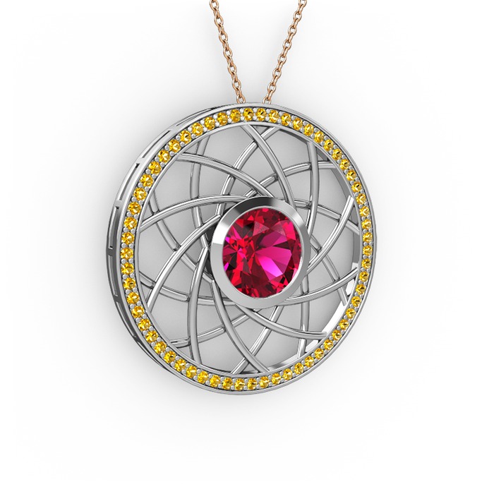 Rodolit garnet ve sitrin 14 ayar beyaz altın kolye (40 cm rose altın rolo zincir)
