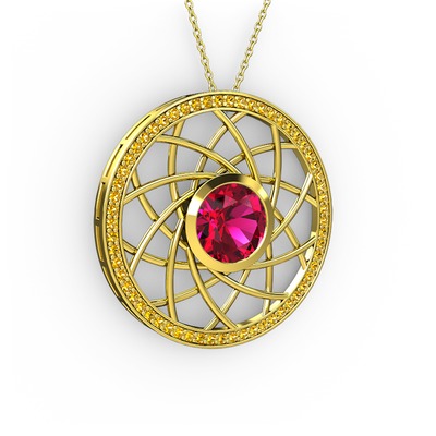 Rodolit garnet ve sitrin 18 ayar altın kolye (40 cm altın rolo zincir)