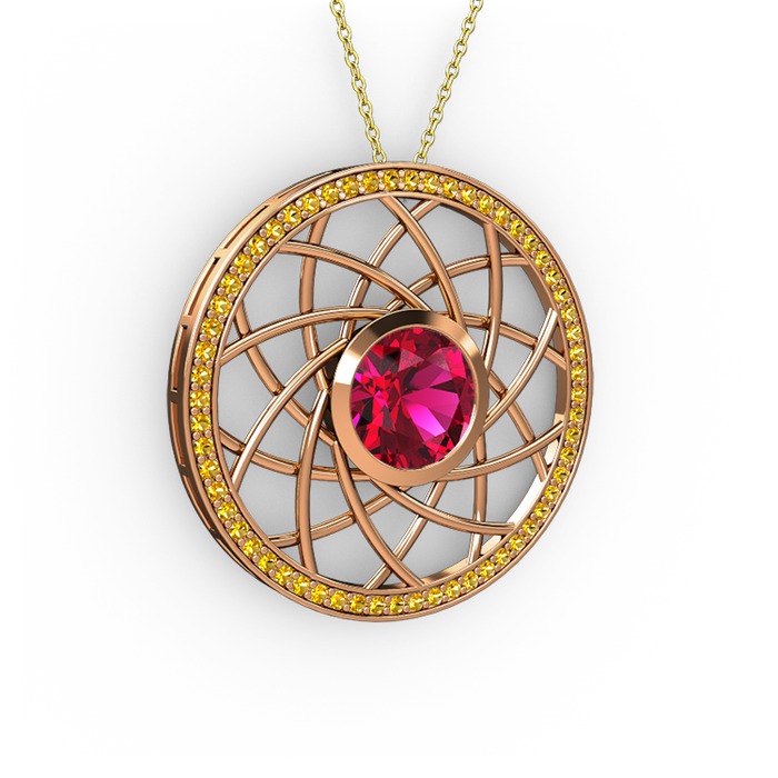 Rodolit garnet ve sitrin 8 ayar rose altın kolye (40 cm altın rolo zincir)