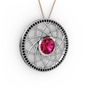 Rodolit garnet ve siyah zirkon 8 ayar beyaz altın kolye (40 cm rose altın rolo zincir)