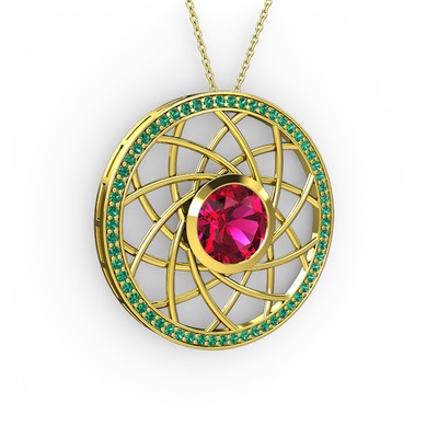 Rodolit garnet ve yeşil kuvars 18 ayar altın kolye (40 cm altın rolo zincir)