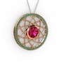 Rodolit garnet ve yeşil kuvars 925 ayar rose altın kaplama gümüş kolye (40 cm beyaz altın rolo zincir)