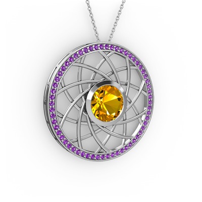 Sitrin ve ametist 14 ayar beyaz altın kolye (40 cm beyaz altın rolo zincir)