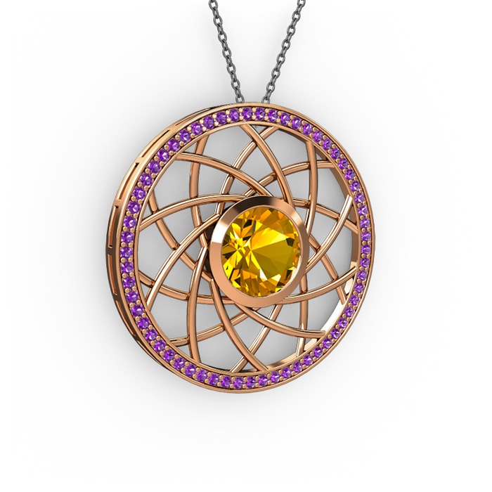 Sitrin ve ametist 8 ayar rose altın kolye (40 cm gümüş rolo zincir)