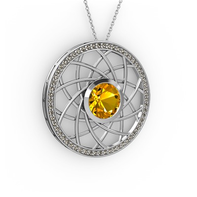 Sitrin ve dumanlı kuvars 8 ayar beyaz altın kolye (40 cm gümüş rolo zincir)