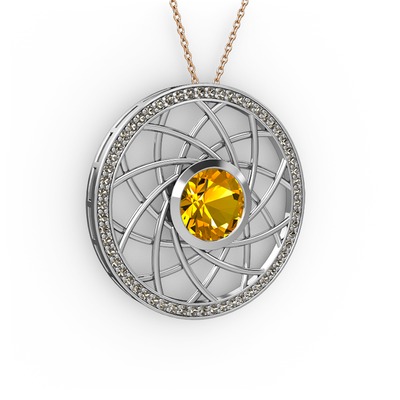 Sitrin ve dumanlı kuvars 925 ayar gümüş kolye (40 cm rose altın rolo zincir)