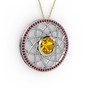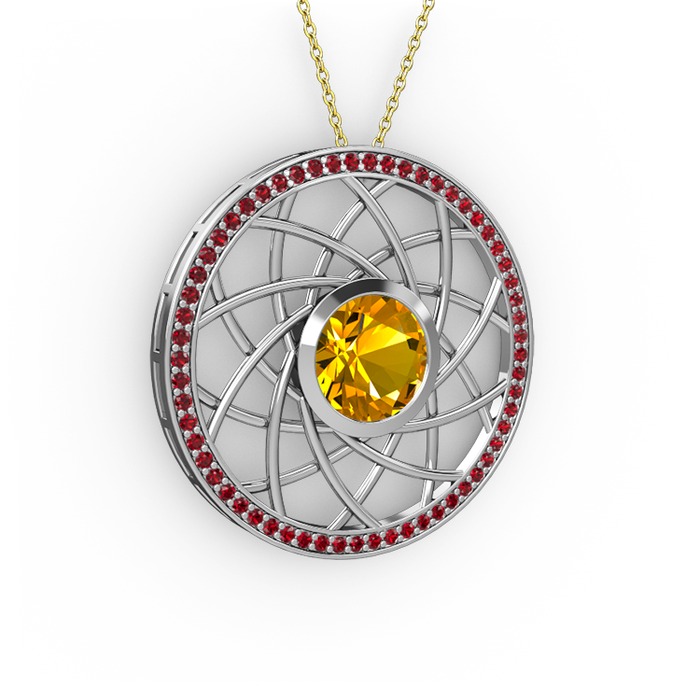 Sitrin ve garnet 8 ayar beyaz altın kolye (40 cm gümüş rolo zincir)