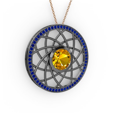 Sitrin ve lab safir 925 ayar siyah rodyum kaplama gümüş kolye (40 cm rose altın rolo zincir)
