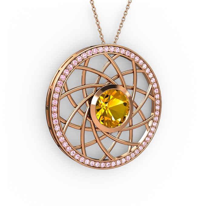 Sitrin ve pembe kuvars 18 ayar rose altın kolye (40 cm rose altın rolo zincir)