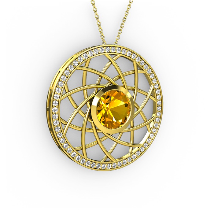 Sitrin ve pırlanta 14 ayar altın kolye (0.66 karat, 40 cm altın rolo zincir)