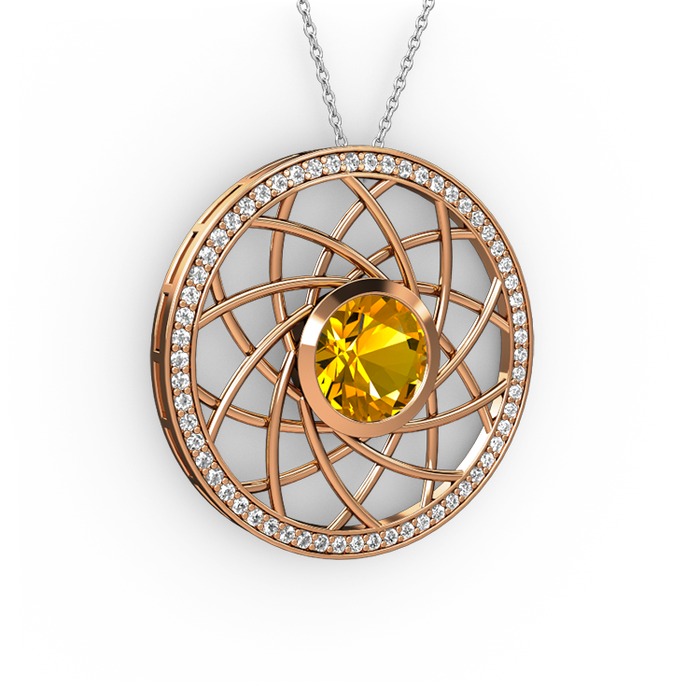 Sitrin ve pırlanta 14 ayar rose altın kolye (0.66 karat, 40 cm beyaz altın rolo zincir)