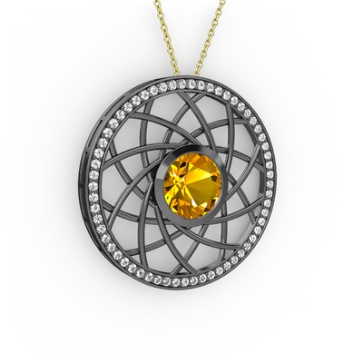 Sitrin ve pırlanta 925 ayar siyah rodyum kaplama gümüş kolye (0.66 karat, 40 cm gümüş rolo zincir)