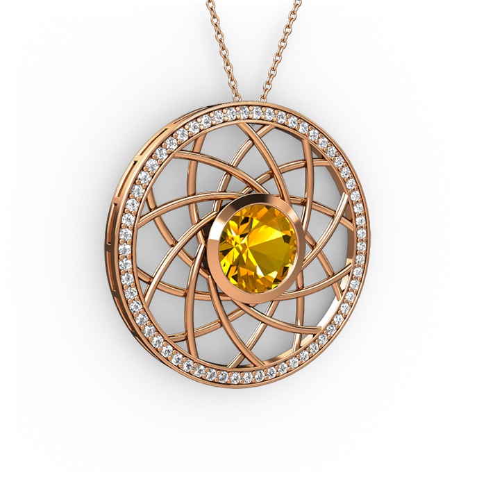 Sitrin ve swarovski 18 ayar rose altın kolye (40 cm rose altın rolo zincir)