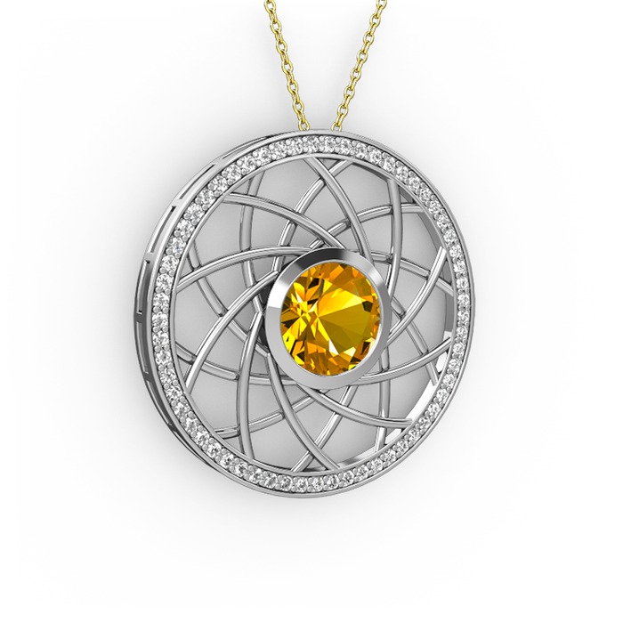 Sitrin ve swarovski 925 ayar gümüş kolye (40 cm altın rolo zincir)