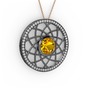 Sitrin ve swarovski 925 ayar siyah rodyum kaplama gümüş kolye (40 cm rose altın rolo zincir)