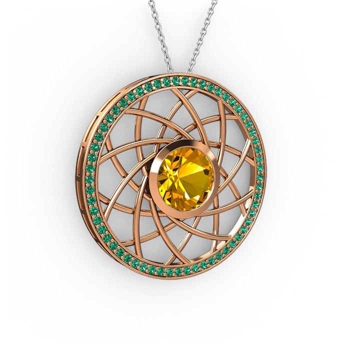 Sitrin ve yeşil kuvars 18 ayar rose altın kolye (40 cm gümüş rolo zincir)