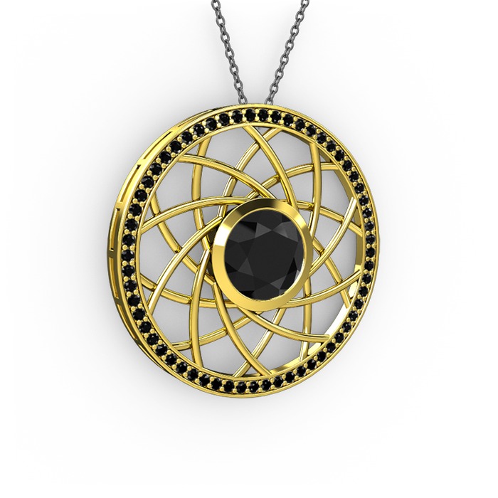 Siyah zirkon 8 ayar altın kolye (40 cm gümüş rolo zincir)