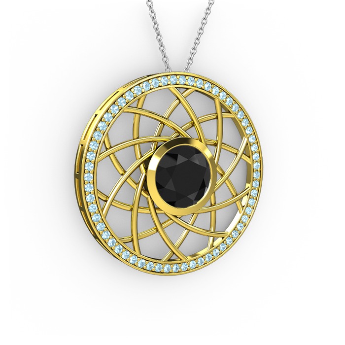 Siyah zirkon ve akuamarin 8 ayar altın kolye (40 cm beyaz altın rolo zincir)