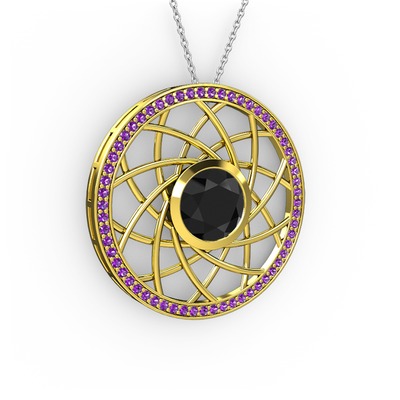 Siyah zirkon ve ametist 18 ayar altın kolye (40 cm beyaz altın rolo zincir)