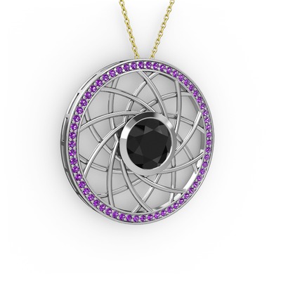 Siyah zirkon ve ametist 18 ayar beyaz altın kolye (40 cm altın rolo zincir)