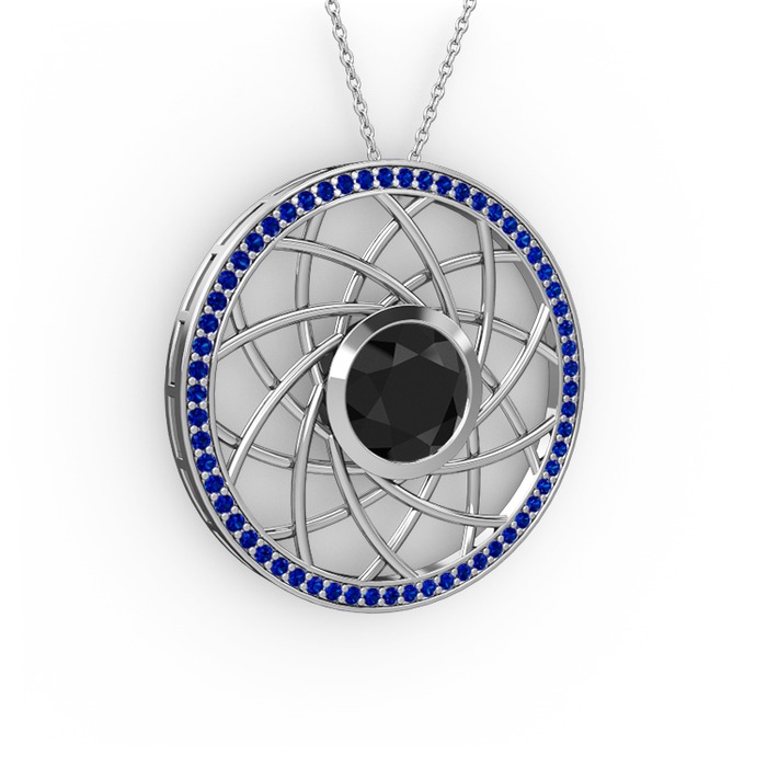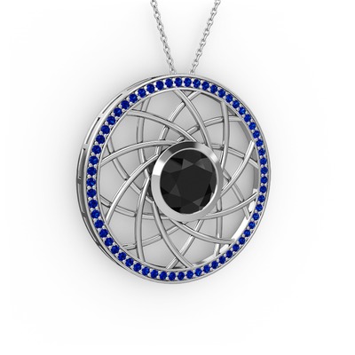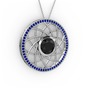 Siyah zirkon ve lab safir 14 ayar beyaz altın kolye (40 cm beyaz altın rolo zincir)