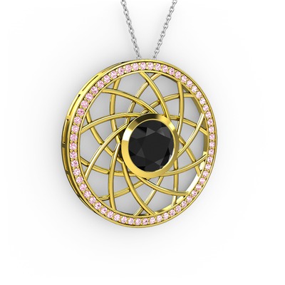 Siyah zirkon ve pembe kuvars 14 ayar altın kolye (40 cm beyaz altın rolo zincir)