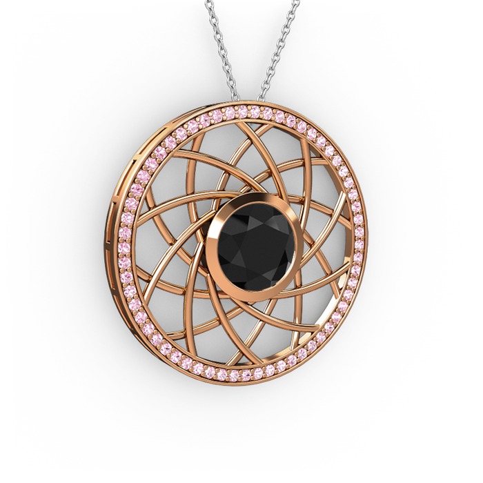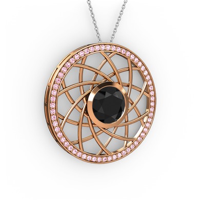 Siyah zirkon ve pembe kuvars 925 ayar rose altın kaplama gümüş kolye (40 cm beyaz altın rolo zincir)