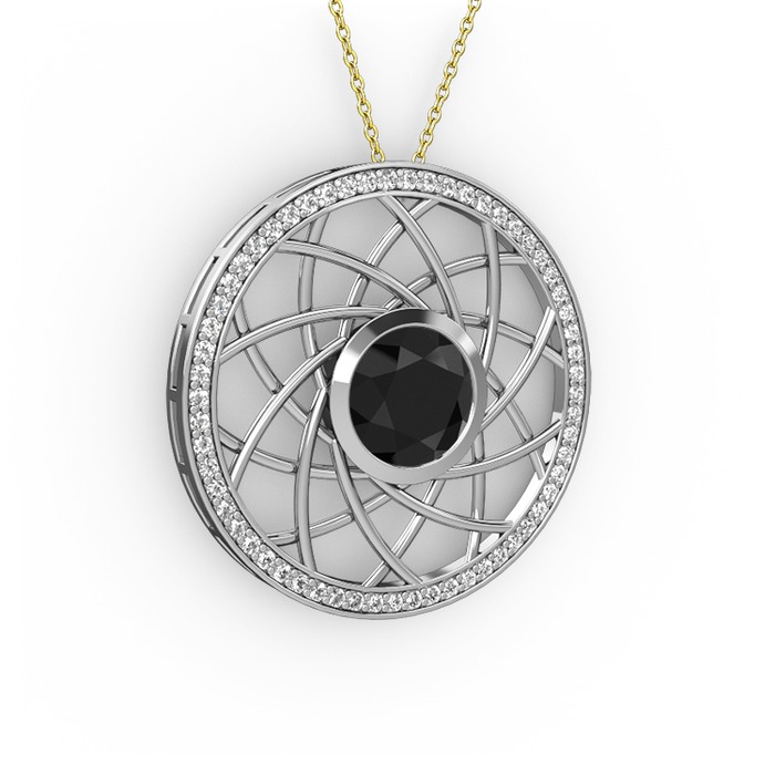 Siyah zirkon ve pırlanta 18 ayar beyaz altın kolye (0.66 karat, 40 cm altın rolo zincir)