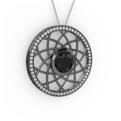 Siyah zirkon ve pırlanta 925 ayar siyah rodyum kaplama gümüş kolye (0.66 karat, 40 cm beyaz altın rolo zincir)