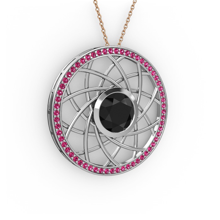 Siyah zirkon ve rodolit garnet 14 ayar beyaz altın kolye (40 cm rose altın rolo zincir)