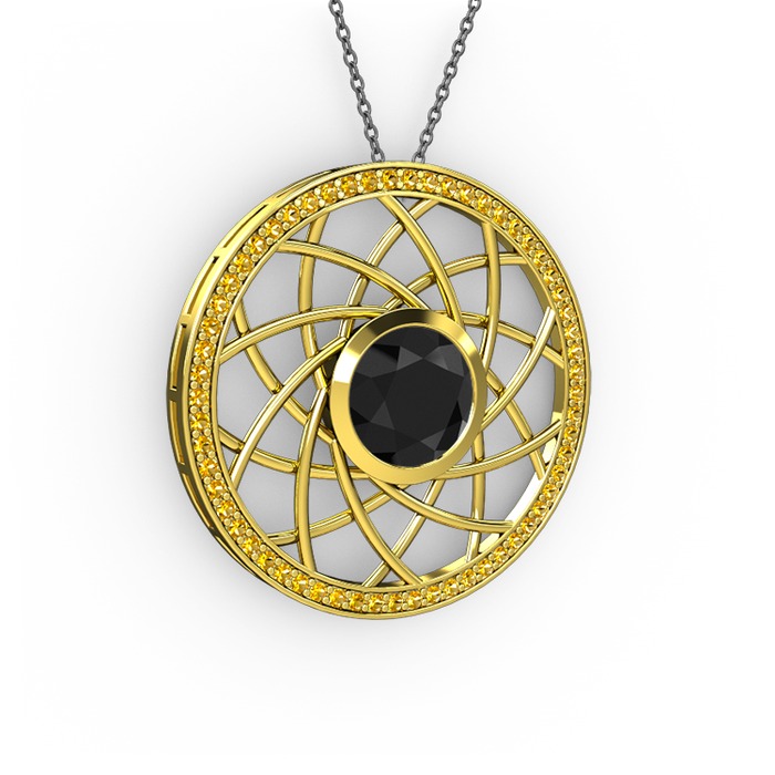 Siyah zirkon ve sitrin 925 ayar altın kaplama gümüş kolye (40 cm gümüş rolo zincir)