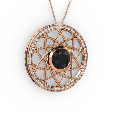 Siyah zirkon ve swarovski 925 ayar rose altın kaplama gümüş kolye (40 cm rose altın rolo zincir)