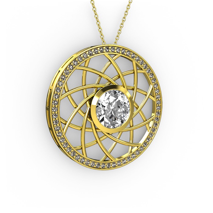 Swarovski ve dumanlı kuvars 8 ayar altın kolye (40 cm gümüş rolo zincir)