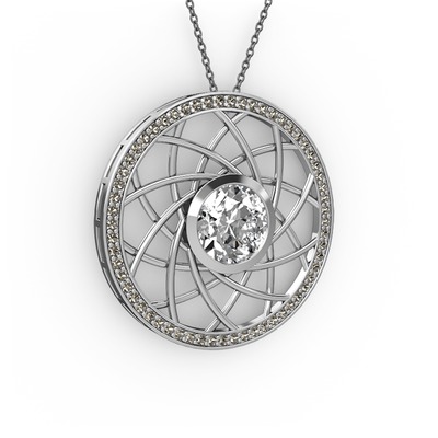 Swarovski ve dumanlı kuvars 8 ayar beyaz altın kolye (40 cm gümüş rolo zincir)