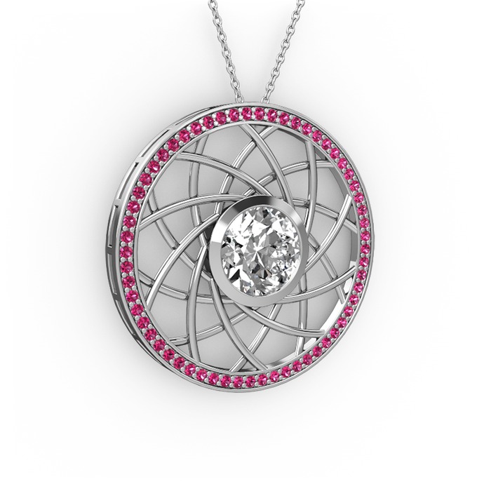 Swarovski ve rodolit garnet 14 ayar beyaz altın kolye (40 cm beyaz altın rolo zincir)