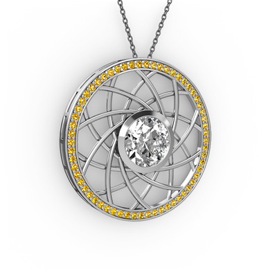 Swarovski ve sitrin 14 ayar beyaz altın kolye (40 cm gümüş rolo zincir)