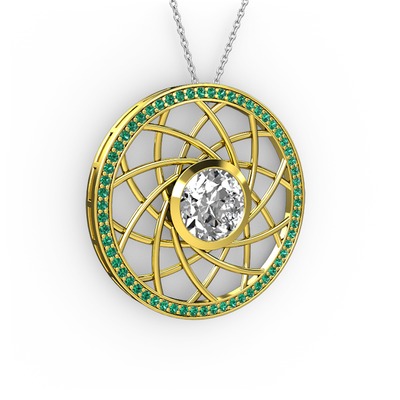 Swarovski ve yeşil kuvars 18 ayar altın kolye (40 cm gümüş rolo zincir)