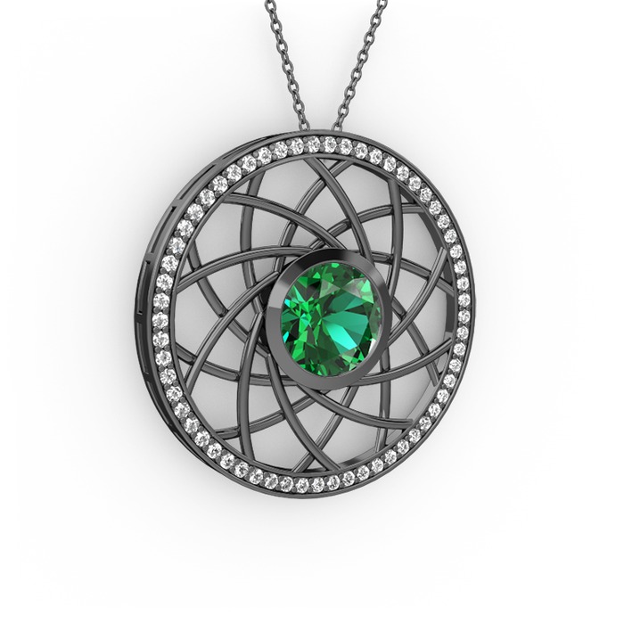 Yeşil kuvars ve beyaz zirkon 925 ayar siyah rodyum kaplama gümüş kolye (40 cm gümüş rolo zincir)