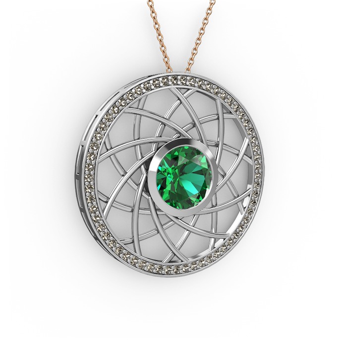 Yeşil kuvars ve dumanlı kuvars 925 ayar gümüş kolye (40 cm rose altın rolo zincir)